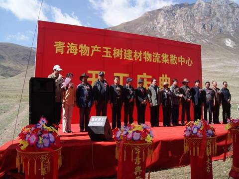 王總在開工儀式上講道:"地震摧毀了美麗的玉樹,但我們要從廢墟中挺立起來,用自己勤勞的雙手,去建設一個更加美麗、更加富饒、更加和諧的社會主義新玉樹。"這是黨和政府的囑托,也是災區人民殷切的期盼。作為省內長期從事生產資料流通的大型國有企業,我司有責任、有義務,發揚一方有難,八方支援,團結互助,共克時艱的精神,積極投身到玉樹災后重建工作中去。我司在中標政府采購的2萬噸鋼材和2.1萬立方米木材的基礎上,再投資2600萬元建設青海物產玉樹建材物流集散中心,我們將在最短的工期內,用科學、綠色的施工方法將建材物流集散中心建成使用,并在未來3年時間內,完成玉樹災后重建所需的包括鋼材、木材、陶瓷建材、裝飾建材等物資的供應配送,為相繼開工的各個建設項目,提供源源不斷的建筑材料物資保障。為建設一個更加美麗、更加富饒、更加和諧的社會主義新玉樹奉獻我們青海物產人的力量。
